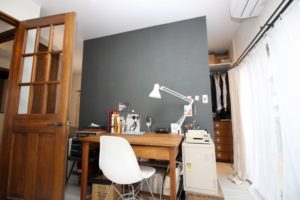 書斎の壁面にはマグネットペイントを施しているのもアイデアです。そのままメモなどをマグネットで貼り付けておけるので実用的でおしゃれな空間を作ることができます。ただし実際に施工したオーナー曰く「マグネットペイントは経験上何度も重ね塗りしないとマグネットがくっつかない」そうです。ちょっと根気が必要かも。